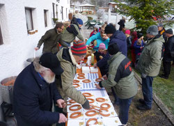 Natürlich unterstützten wir gerne wieder die Pfadfindergruppe bei der alljährlichen Adventwanderung mit der Ausgabe von Tee und heißen Würsteln. Dazu bauten wir unseren Stand auf der Terrasse des Jugendheimes Schwaigmühle am Fuße des Untersberges auf. Nach den Anstrengungen der Wanderung und der einsetzenden Kälte freuten sich die Kinder und Eltern auf etwas Warmes, so dass wir im Nullkommanichts alles ausgegeben hatten.