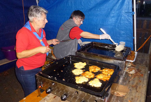 Pofesen und Apfeldatscherl, die den Leiterinnen und Leitern offensichtlich sehr mundeten, da alles restlos weggeputzt wurde. Vielen Dank den Köchinnen Brigitte und Grete.