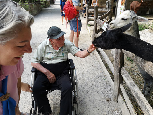 Am 27.7. luden wir fünf Bewohnerinnen und Bewohner des Grödiger Seniorenheims zu einem Zoobesuch in den Tiergarten Hellbrunn.